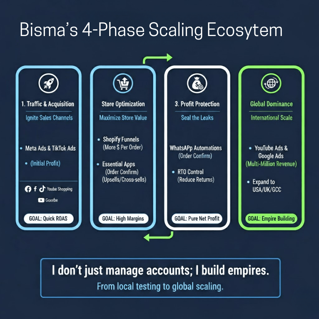 I don't just run ads - I manage your entire growth. From AI creatives to RTO-controlled automations, I build your profitable sales flow in just 30 days.
